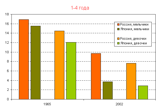 на то, что в России смертность в них снижалась, разрыв с Японией
