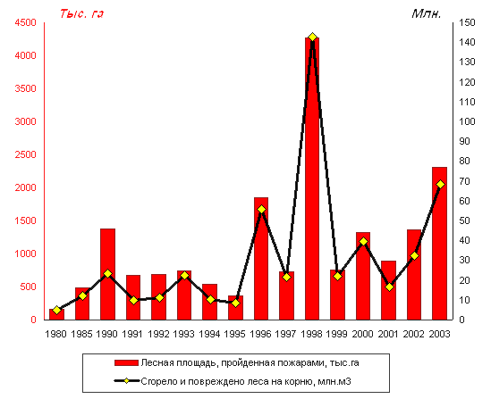 1 миллион гектаров больше, чем в 2002 году. Объем сгоревшего и поврежденного