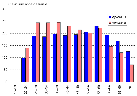 отмечена более высокая, чем у мужчин, доля женщин с высшим