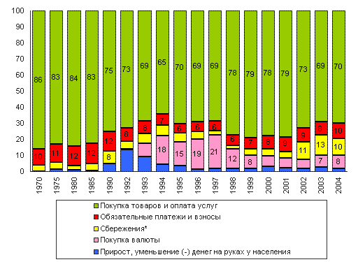 В 2004 году возросли расходы на покупку товаров и услуг