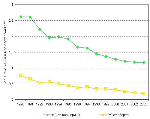 Таблица 3. Материнская смертность в России. 1995-2003