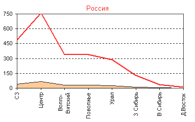 приведенного радиуса территории (13%) оно скорее "среднеевразийское":