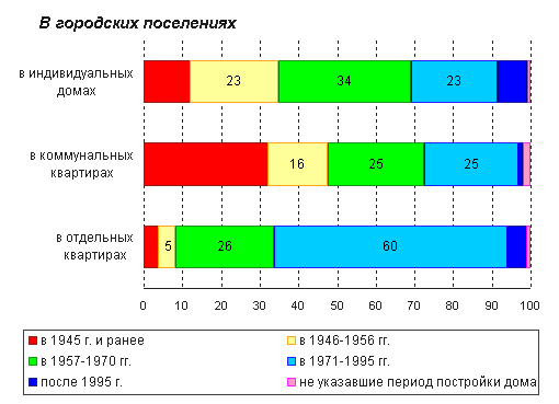 в индивидуальных домах, отдельных и коммунальных квартирах, по периоду