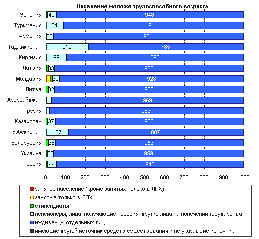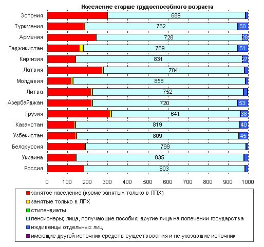 536 на 1000 человек в Армении до 740 в Белоруссии. Однако иждивение