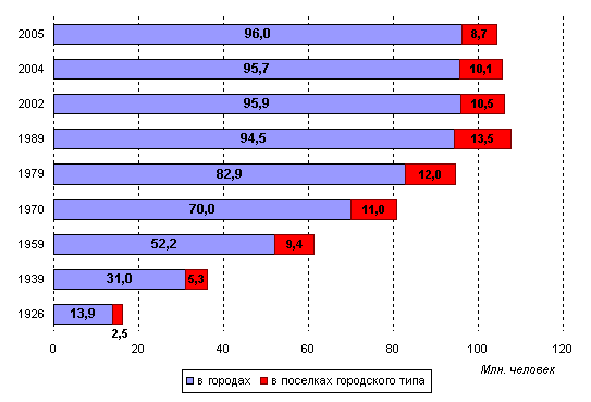 городского типа (на 3,1%). А в 2004 году число проживающих в городах