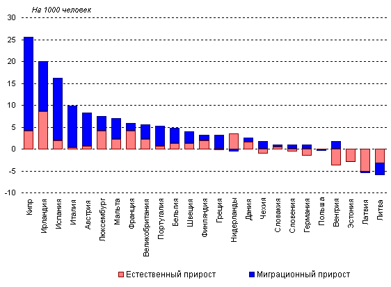 Кипре (+21,3‰), в Испании (+14,3‰) и в Ирландии (+11,4‰). Положительное