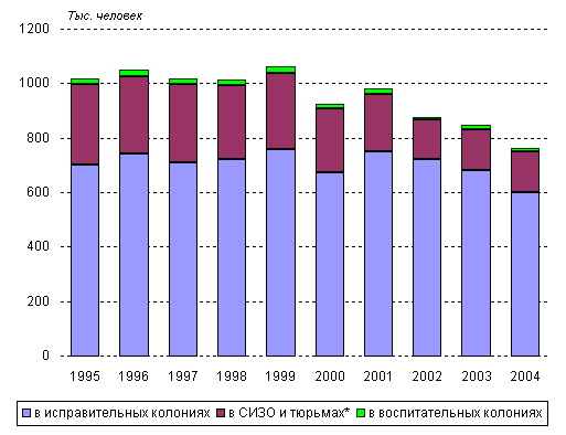изоляторах и тюрьмах. Если в 1995 году она составляла 29,0% всех