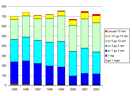 от 5 до 10 лет возросла с 29% в середине 90-х годов до 41% в 2002