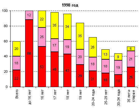 и была заметно выше, чем в 1998 году - 34-35% (рис. 4). Только среди