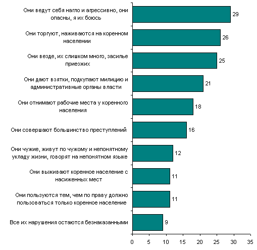 опрошенных. На приезжих проецируются внутренняя агрессия, которая