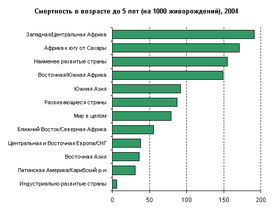 Рисунок 2. Смертность детей в возрасте до 5 лет в странах
