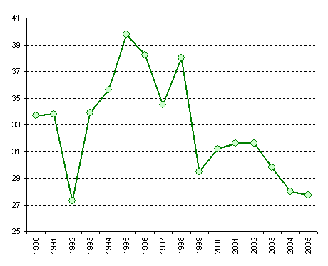 (на 21% и 16% соответственно). Тем не менее, даже в 2005 году реальный