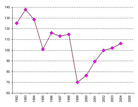 падения - в 1992 и 1999 годах. В результате в 1999 году средняя