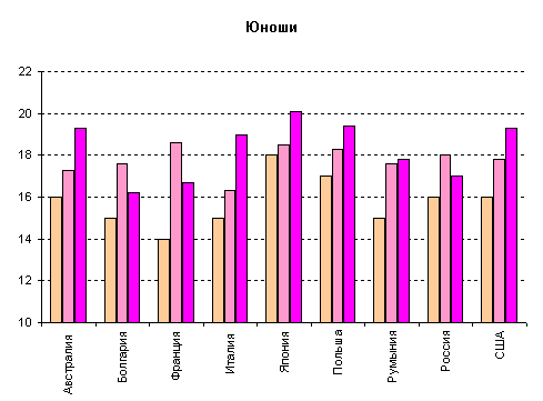 1 год. Исключение составляет Румыния, где юноши на 2,3 года раньше