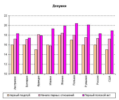 свои сексуальные взаимоотношения позже других, за исключением американцев,