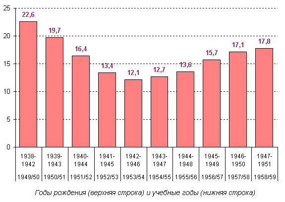 "А в 1953/54 г., - пишет далее Урланис, - число учащихся первых