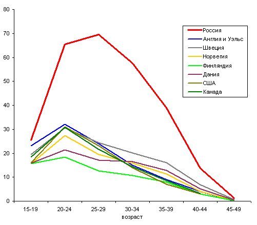 (до 30 лет) уменьшались более быстрыми темпами, чем в старших возрастах.
