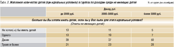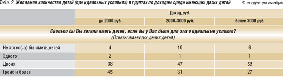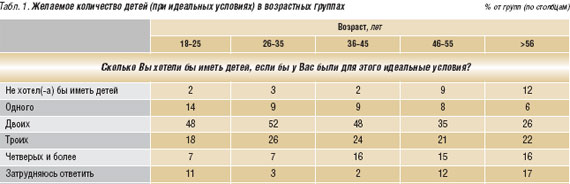выражают желание обзавестись еще одним или несколькими чадами (табл.