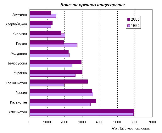 и Узбекистане. Самым низким уровнем заболеваемости болезнями органов