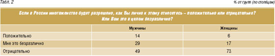 респондентов о многоженстве. Эта тема, при своей кажущейся несерьезности,