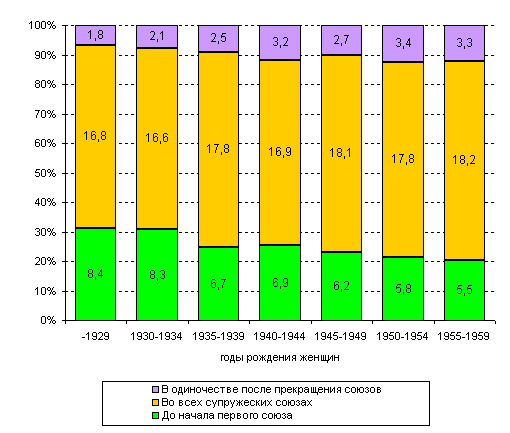семьи в России. Статья первая: Расширяющиеся границы брака. (http://www.demoscope.ru/weekly/2006/0237/tema01.php).