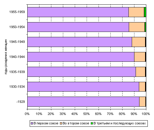 имевшие опыт хотя бы одного союза к 45 годам)