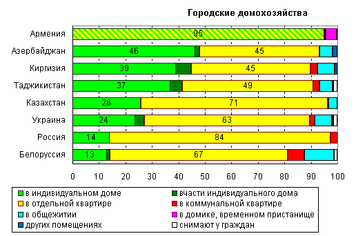 и России до 48% в Азербайджане. Доля городских домохозяйств, проживающих