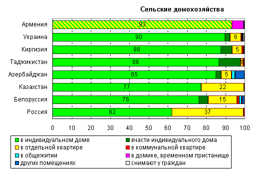 а проживающих в индивидуальном доме или его части - от 14% в Белоруссии