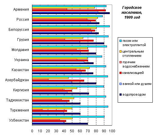 и Армении 90% городских домохозяйств проживали в жилье, оборудованном