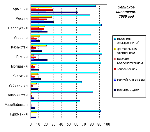 водопроводом, составляла от 67% в Киргизии (в 1989 году - 71%) до