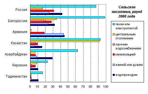 90% в Белоруссии (83%), канализацией - от 46% в Таджикистане (против