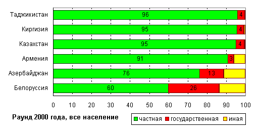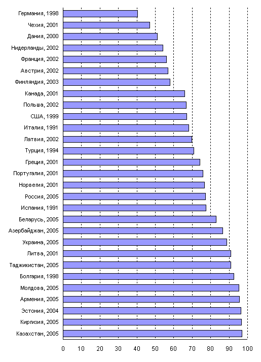 от 60% в Белоруссии до 96% в Таджикистане (рис. 22).