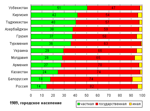 проживало 52% горожан (в 1989 году - 17,5%), Казахстане - 93% (24%),