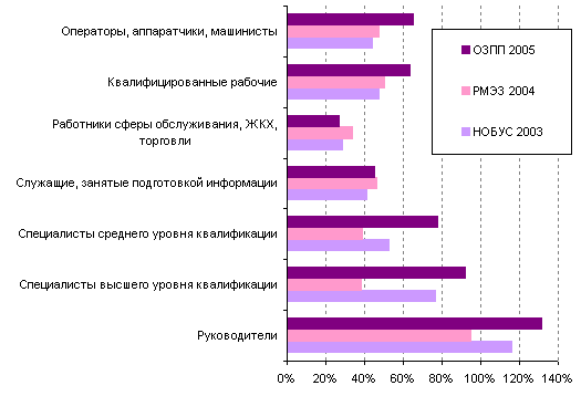 обследованиями, ОЗПП фиксирует существенно более широкий разброс