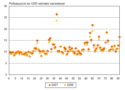 В первом полугодии 2007 года заметно больше рождений было зафиксировано