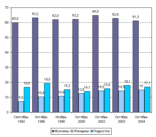 оставалась белой вороной, здесь между 1991 и 2001 гг. доля курящих
