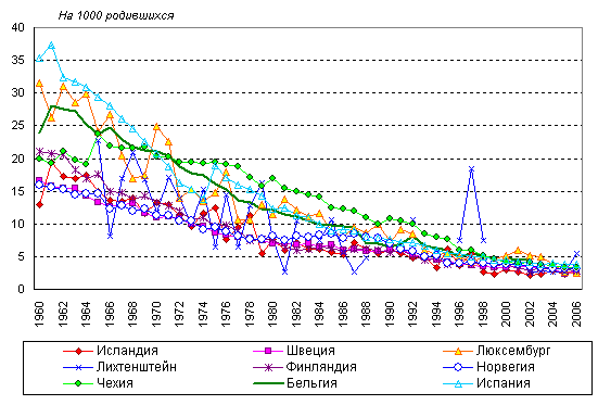младенческой смертности в этой группе стран не превышал 4‰, составляя