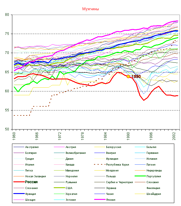 прошлого века продолжительности жизни российских мужчин и ее приближение