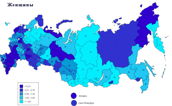 на смертность женщин в этих регионах, а общие негативные тенденции