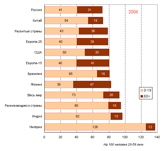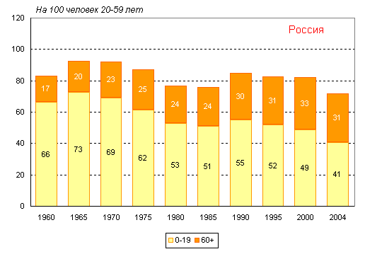 причем нагрузка населением моложе 20 лет превышала 124%. К 2004