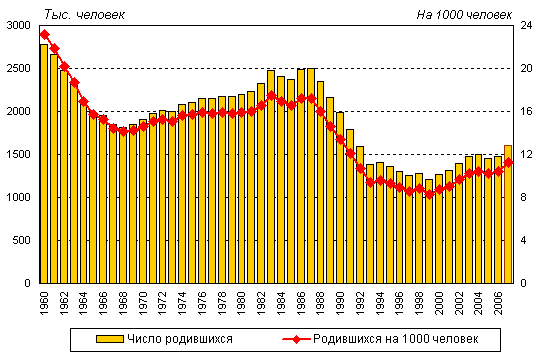 В 2007 году, по предварительным данным, родилось более 1602 тысяч
