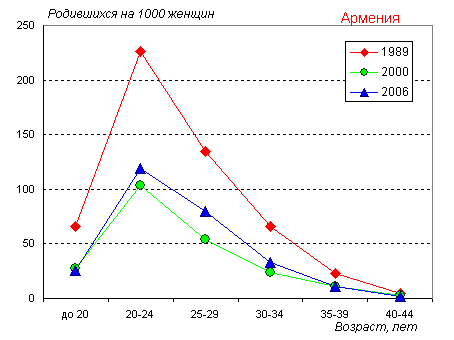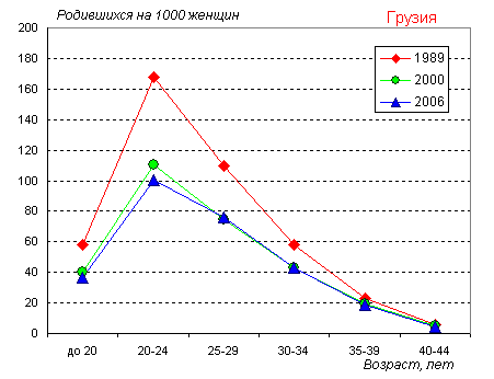 и Армении до 40 в Грузии (1,5 раза), в возрасте 20-24 года - от