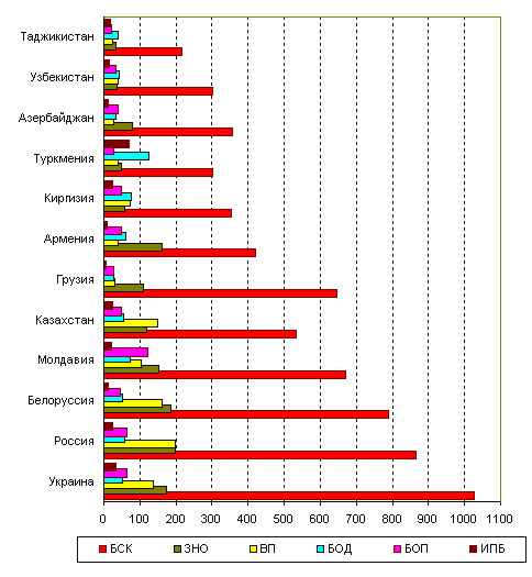 в России, Белоруссии, Казахстане и на Украине (138-198 умерших на
