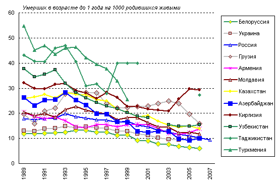 уровень младенческой смертности в республиках Средней Азии заметно