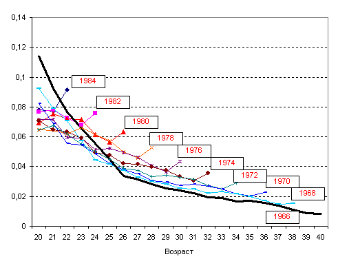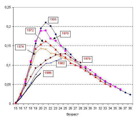 с возраста 20-23 года у поколений рубежа 1960-1970-х годов рождения
