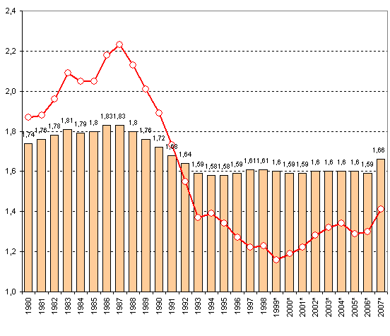 рождаемости в 2007 году привели к его повышению до 1,66.