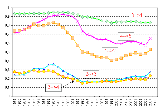 детей, с 2000 года – вероятность вторых рождений. Вероятности появления