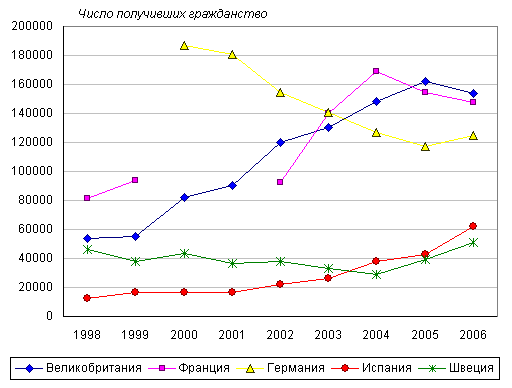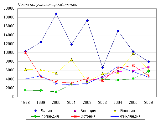 В 2004-2006 годах число получивших гражданство в странах