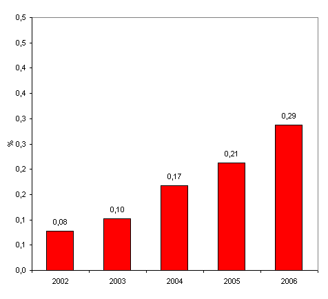 ВРТ. Россия, 1999, 2002-2006 годы, %