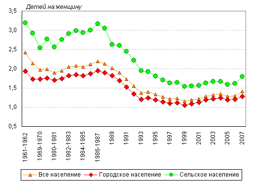 рождаемость в городских поселениях была выше, чем на селе. Весьма